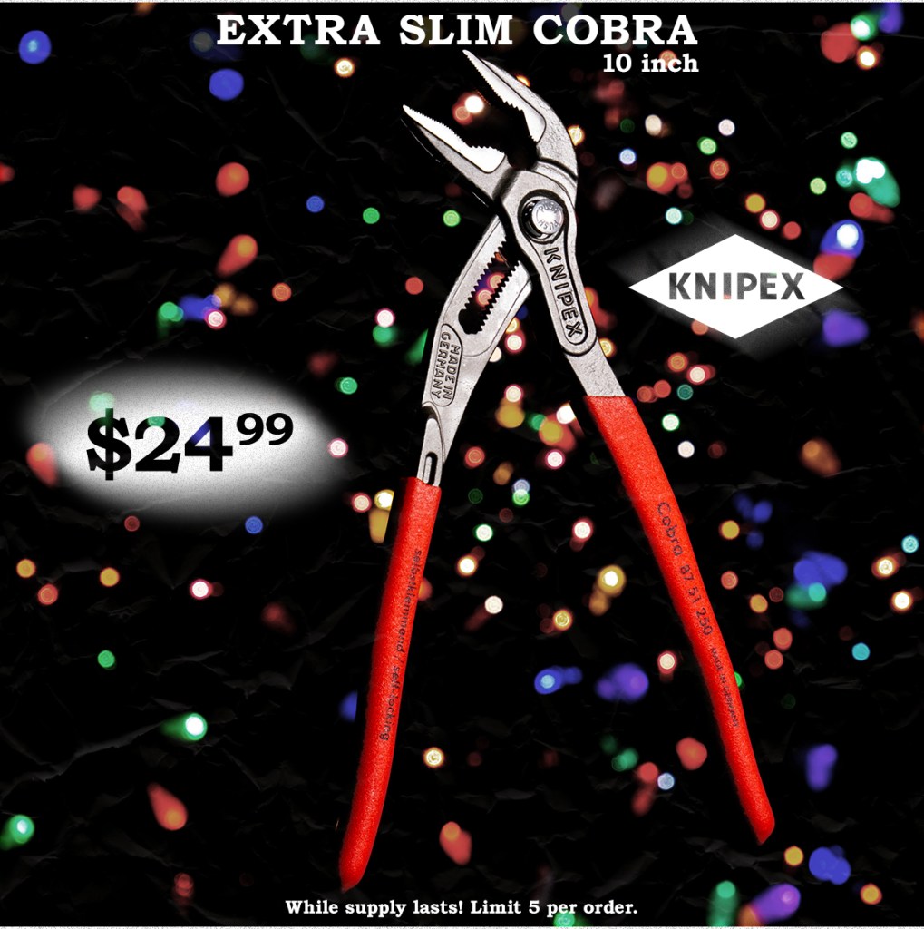 KC Tool Black Friday Deals Going On NOW At KC Tool! ⠀ November 27, 2020November 25, 2020 collinLeave a comment Get 20% OFF site-wide (excludes Stabila products) using coupon code KCT20 and featured tools from Wiha, Wera, Knipex, NWS, Stahlwille and Gedore! Now through Midnight CST. While Supplies Last. Rate this:Share this: Click to share on X (Opens in new window) X Click to share on Facebook (Opens in new window) Facebook Click to email a link to a friend (Opens in new window) Email Click to share on LinkedIn (Opens in new window) LinkedIn Click to share on Tumblr (Opens in new window) Tumblr Click to share on Reddit (Opens in new window) Reddit Click to share on Pinterest (Opens in new window) Pinterest Click to print (Opens in new window) Print Like Loading... Related